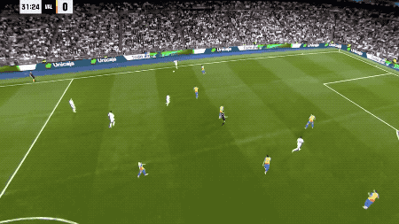 第31分钟,皇马打出流畅配合,卡雷拉斯送出妙传,居莱尔下底传中,姆巴佩空中杂耍射门,梅开二度。